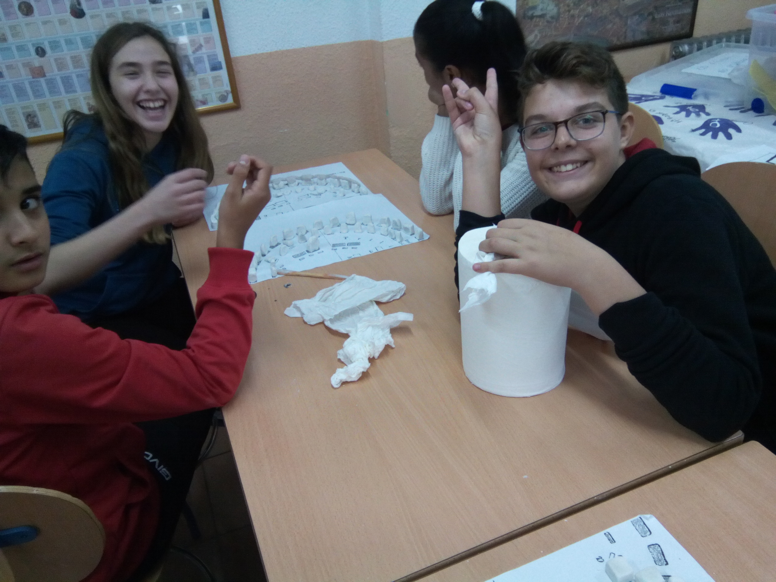 Seguimos trabajando con proyectos, y aunque a veces es un lio, merece la pena ver la implicación y como construyen usando herramientas y medios propios de la prehistoria (a escala), para después contarnos el proceso en presentaciones en Inglés, las cuáles van realizando a la vez que las construcciones. De este modo se vuelven agentes activos del proceso de enseñanza-aprendizaje, introduciendo el inglés en el trabajo diario que realizamos y haciéndolo algo normal y perfectamente adaptado a nuestra rutina.