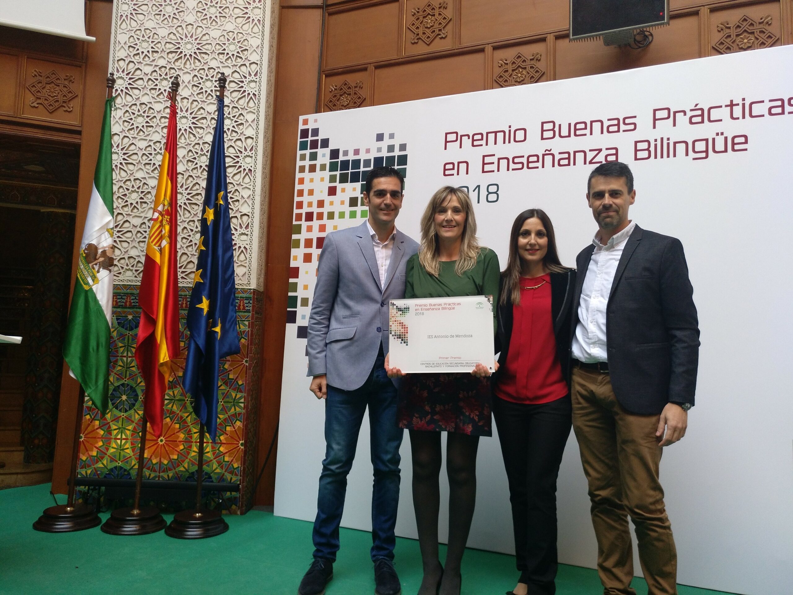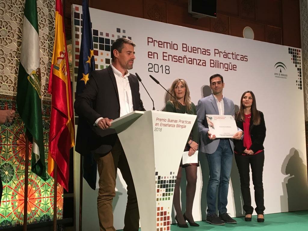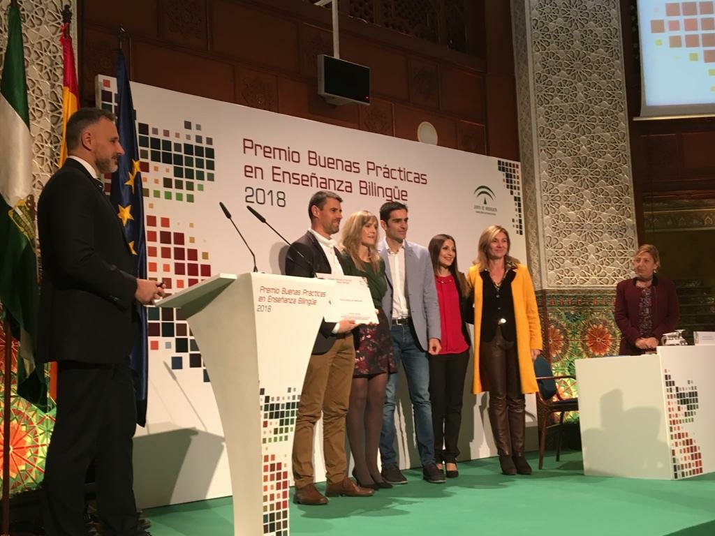 El martes 18 de diciembre acudimos a Sevilla a recoger el primer premio de Buenas Prácticas en Enseñanza Bilingüe concedido por la Consejería de Educación de la Junta de Andalucía.