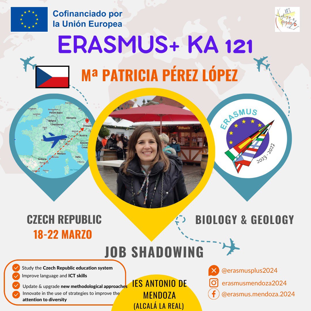 Desde el lunes 18 hasta el 22 de abril nuestra compañera M. Patricia Pérez López, profesora de Biología y Geología y coordinadora del programa ALDEA emprende su semana de observación en la Escuela ZIZKOV de la República Checa. Es la segunda movilidad de profesorado de nuestro proyecto Erasmus + KA 121. Su movilidad está enfocada a la mejora de la competencia lingüística en inglés, a la innovación en enfoques metodológicos, al perfeccionamiento de la competencia digital y a la actualización de las herramientas de atención a la diversidad. Sabemos que lleva un exhaustivo programa de atención a clases y talleres.