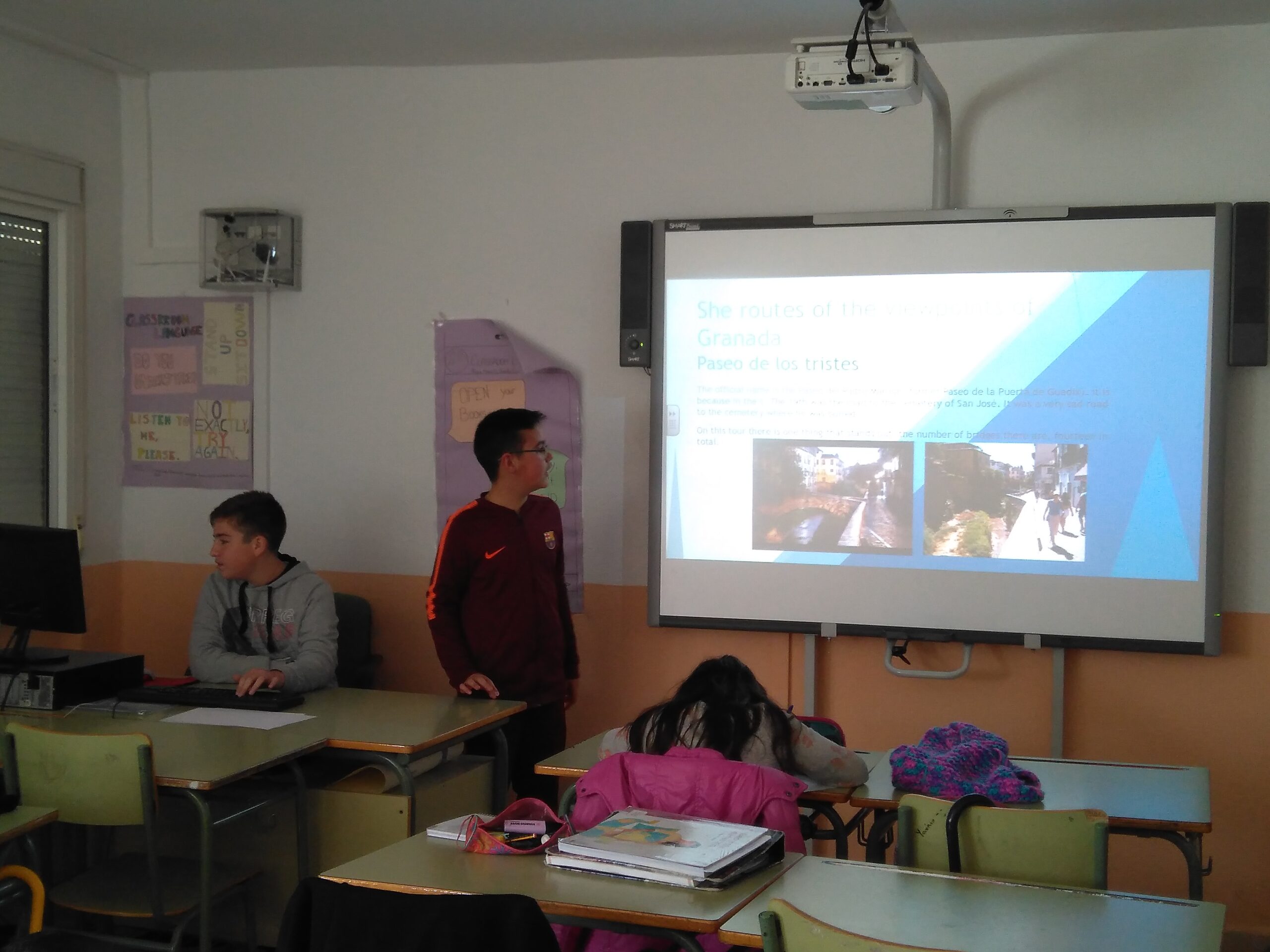 Como resultado de nuestra visita a Granada, el alumnado de 2º de Geografía e Historia han estado investigando y preparando una serie de pequeñas presentaciones que han ido exponiendo en estos días, sobre distintos rincones de Granada, palacios y miradores, los cuales son presentados en Inglés. Tras varias sem